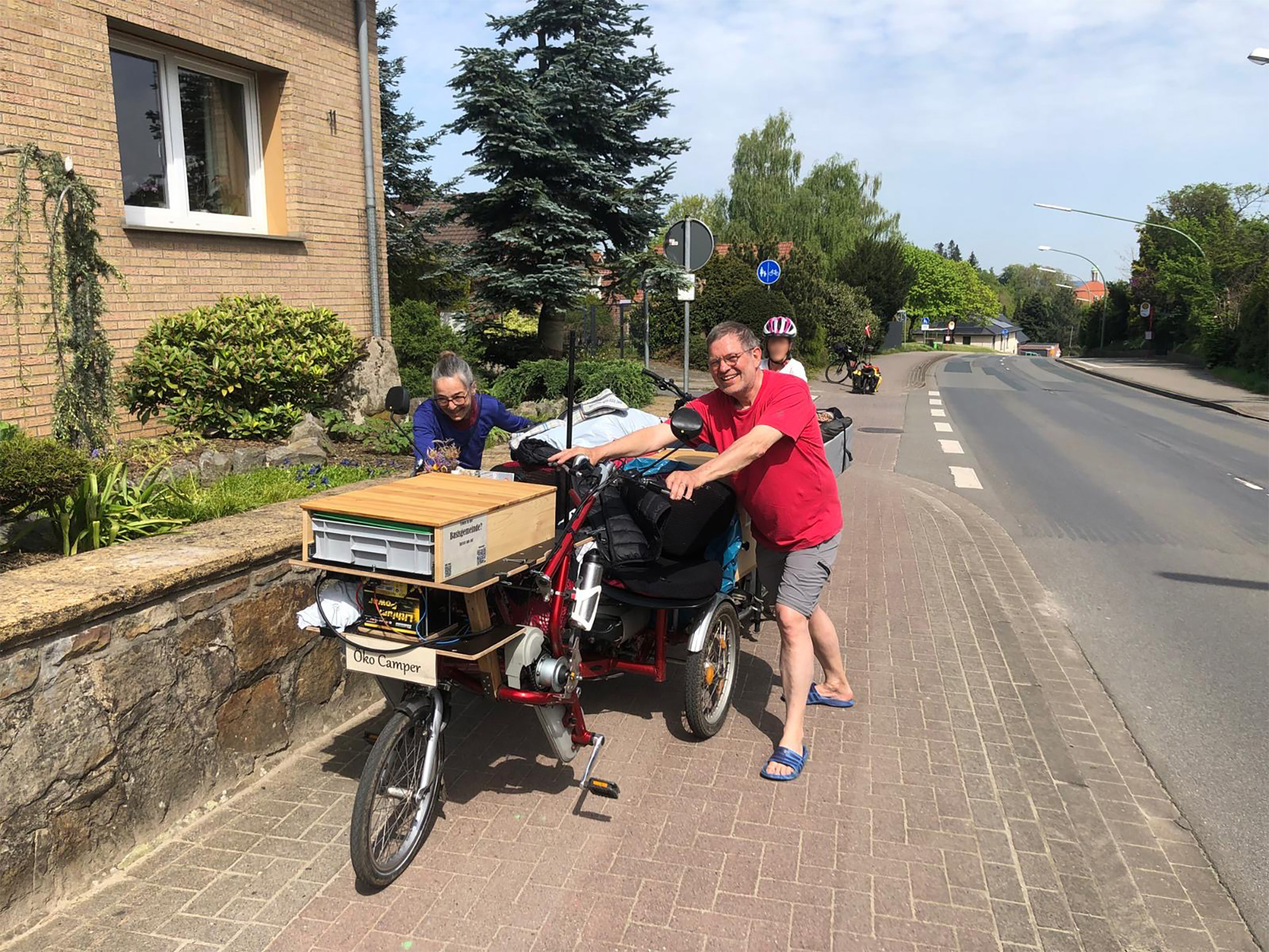 Der Journalist machte Fotos, stellte uns Fragen und hörte mit großem Interesse zu, wie wir von unserer Tour von Norddeutschland nach Frankreich berichteten. Für uns war es ein schönes Gefühl, diese Begeisterung zu teilen und anderen zu zeigen, was mit einem Tandem wie dem Fun2Go möglich ist.