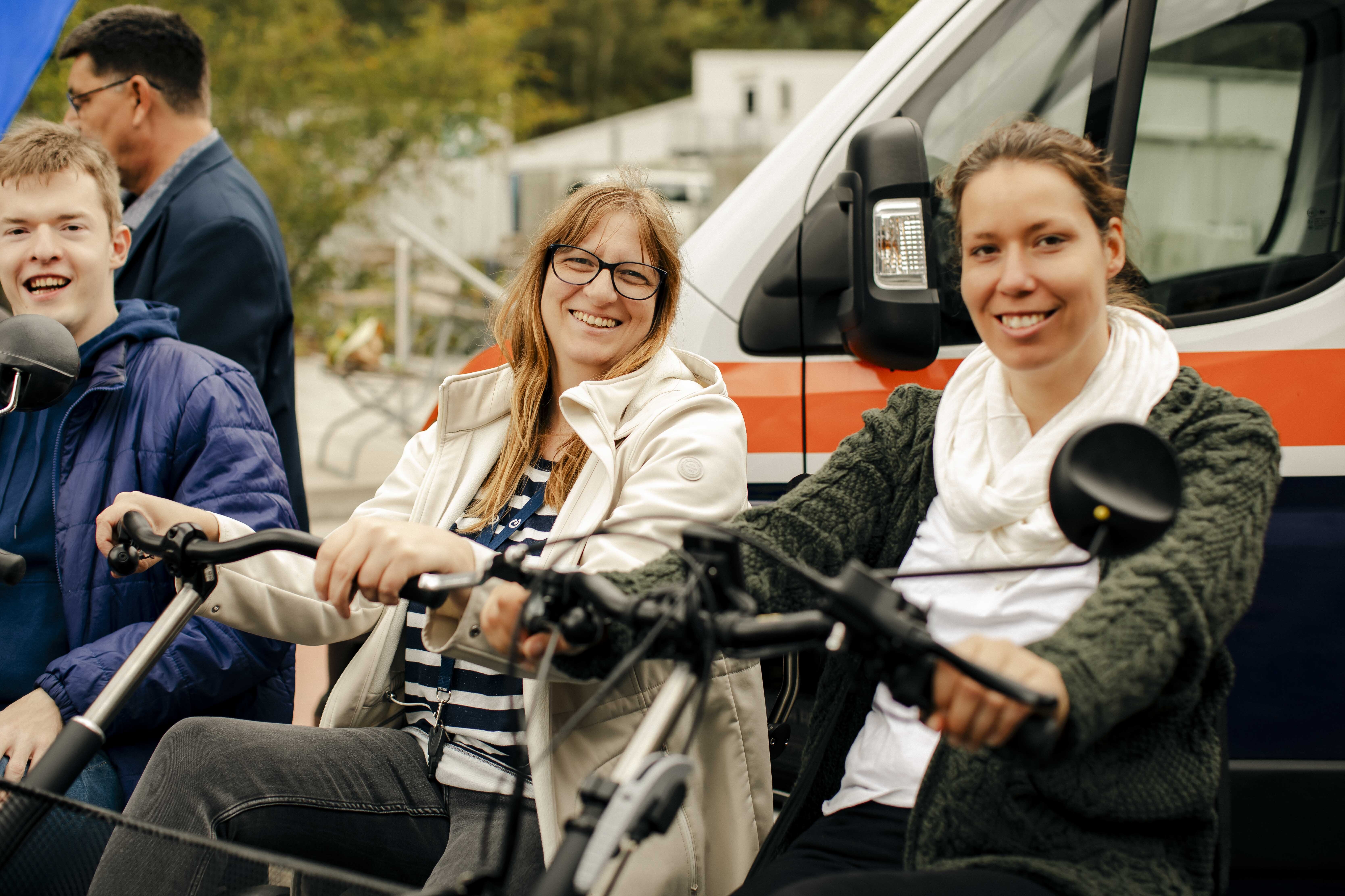 Unsere Kollegin Christina Heiken hat die Lebenshilfe vorab besucht, um verschiedene Modelle vorzustellen. Sie brachte mehrere Räder zur Probefahrt mit – und schon beim ersten Ausprobieren war die Begeisterung groß. Die Bewohner:innen strahlten vor Freude, Betreuer:innen waren begeistert von den neuen Möglichkeiten, die sich damit für die Freizeitgestaltung ergeben.